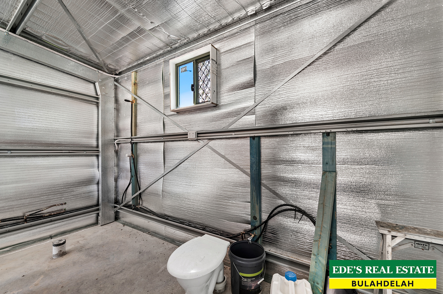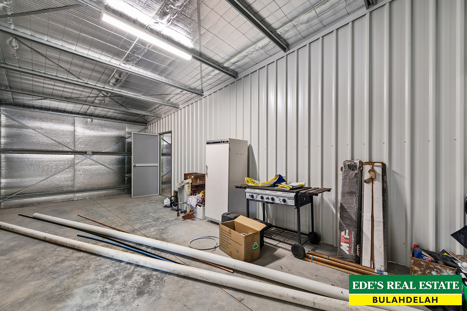 •Shed has 1 bay closed in for storage/ work shop air conditioning